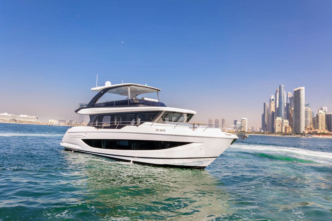 Luxury yacht Amie 63 with capacity for 25 passengers. Located at Dubai Harbour. Built in 2024. 3 bedrooms, 1 beds.