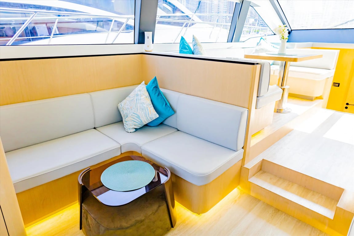Luxury yacht Art 52 with capacity for 15 passengers. Located at Dubai Harbour. Built in 2024. 2 bedrooms, 1 beds.