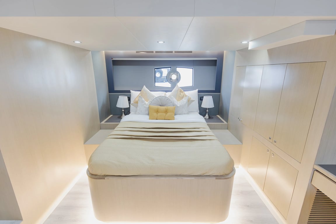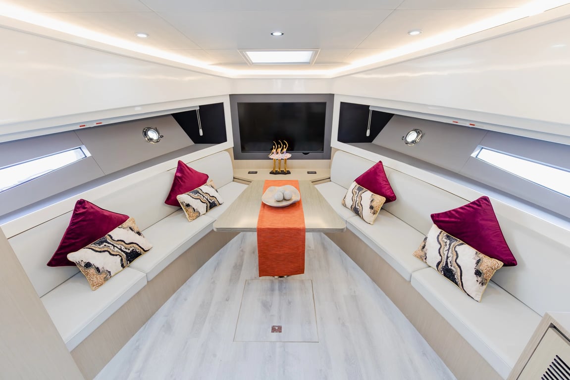 Luxury yacht Gib 52 with capacity for 15 passengers. Located at Dubai Harbour. Built in 2023. 2 bedrooms, 2 beds.