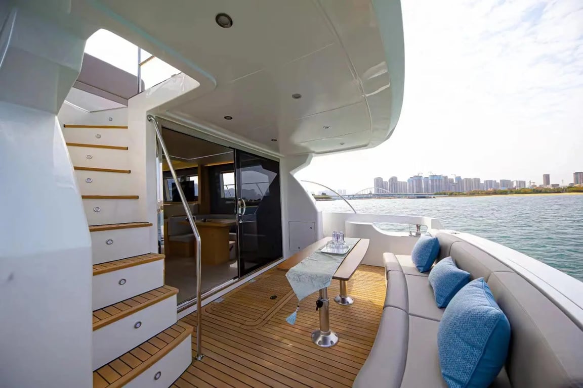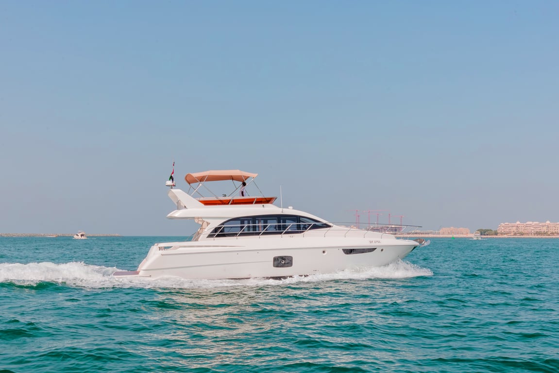 Luxury yacht Neo 52 with capacity for 15 passengers. Located at Dubai Harbour. Built in 2022. 2 bedrooms, 2 beds.