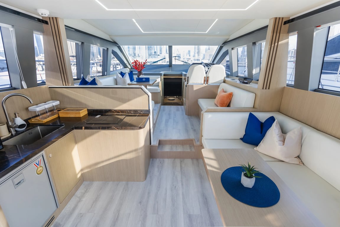 Luxury yacht Rak 1 52 with capacity for 15 passengers. Located at Dubai Harbour. Built in 2024. 1 bedrooms, 2 beds.