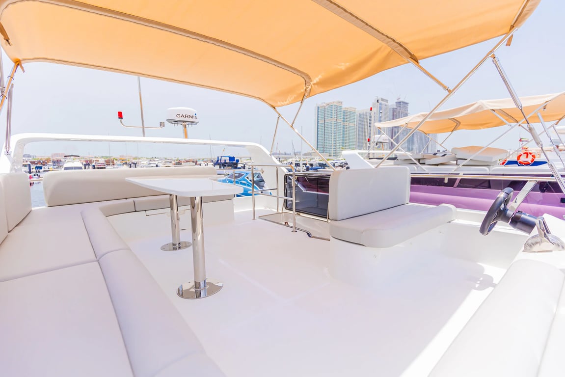 Yacht de luxe Axa 52 d'une capacité de 15 passagers. Situé dans le port de Dubaï. Construit en 2024. 1 chambres, 2 lits.
